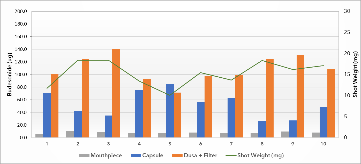 Using the Budesonide Turbuhaler as the reference listed drug ( RLD), Knightpoint with their partners, Intertek, developed a formulation to compare through testing on Aerodynamic Particle Size Distribution (APSD) by NGI and Dose Uniformity.